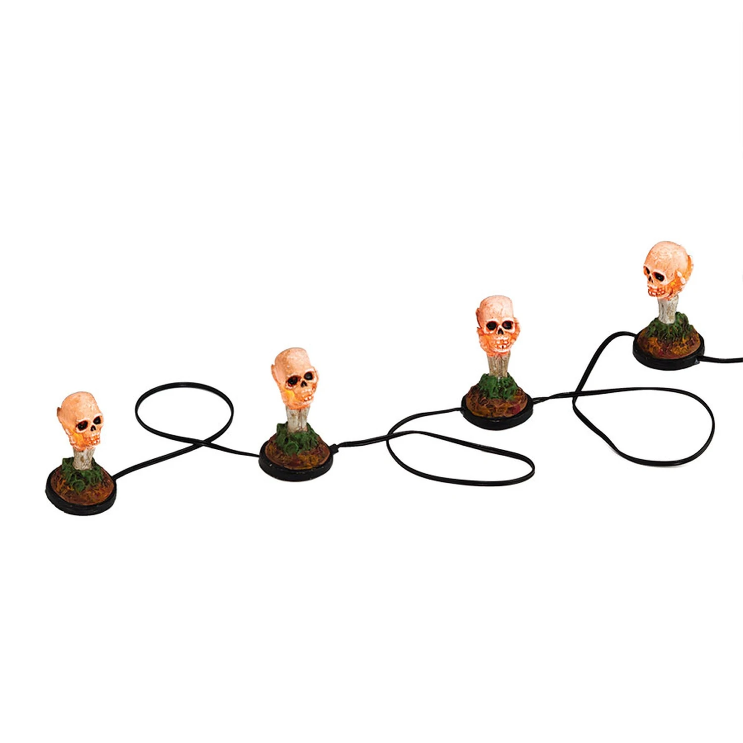 Enhance your Halloween Village display. Boneyard Luminaries, Set of 4 Hand-painted plastic lightup Skulls.